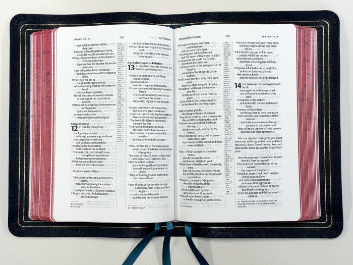 NIV 2011 text * Printed in the UK on best quality, highly opaque 40gsm Thinopaque Bible Paper * Includes introductory essays and Bible book introductions * British spelling and grammar * 10 pt text * 3/4 inch (20mm) outer margin * Line-matched throughout * Centre column references * Allan 8pp Presentation Pages and Family Record * 64pp Concordance * 4 pages of full colour Hodder & Stoughton Bible maps * 32pp Allan feint rule notepaper * Stamped FIRST EDITION inside back cover * Exclusively available in Allan’s fine leather bindings.