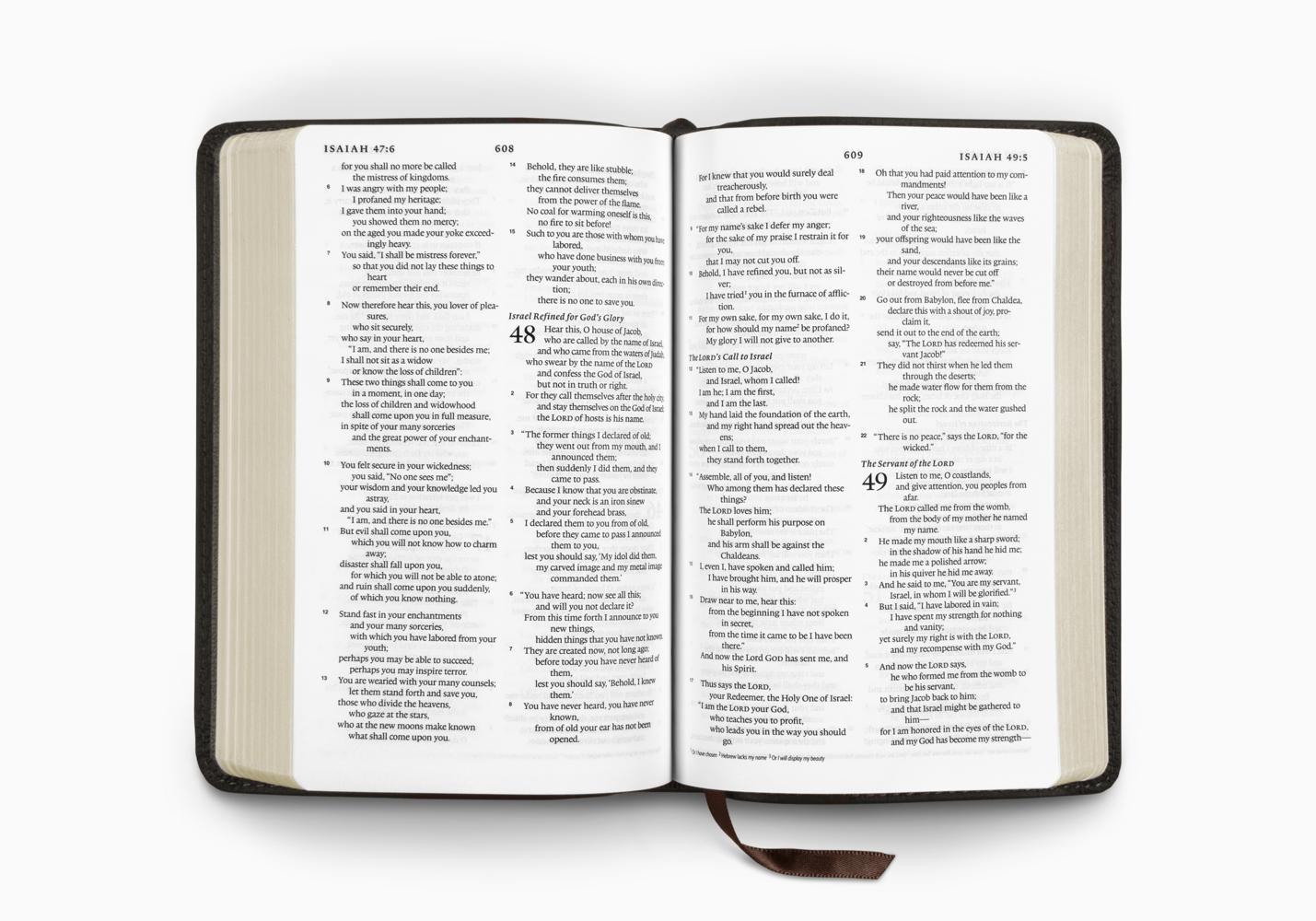 - Classic Format: Double-column layout, a ribbon marker, smyth-sewn binding, and the same page numbers as the ESV Thinline Bible