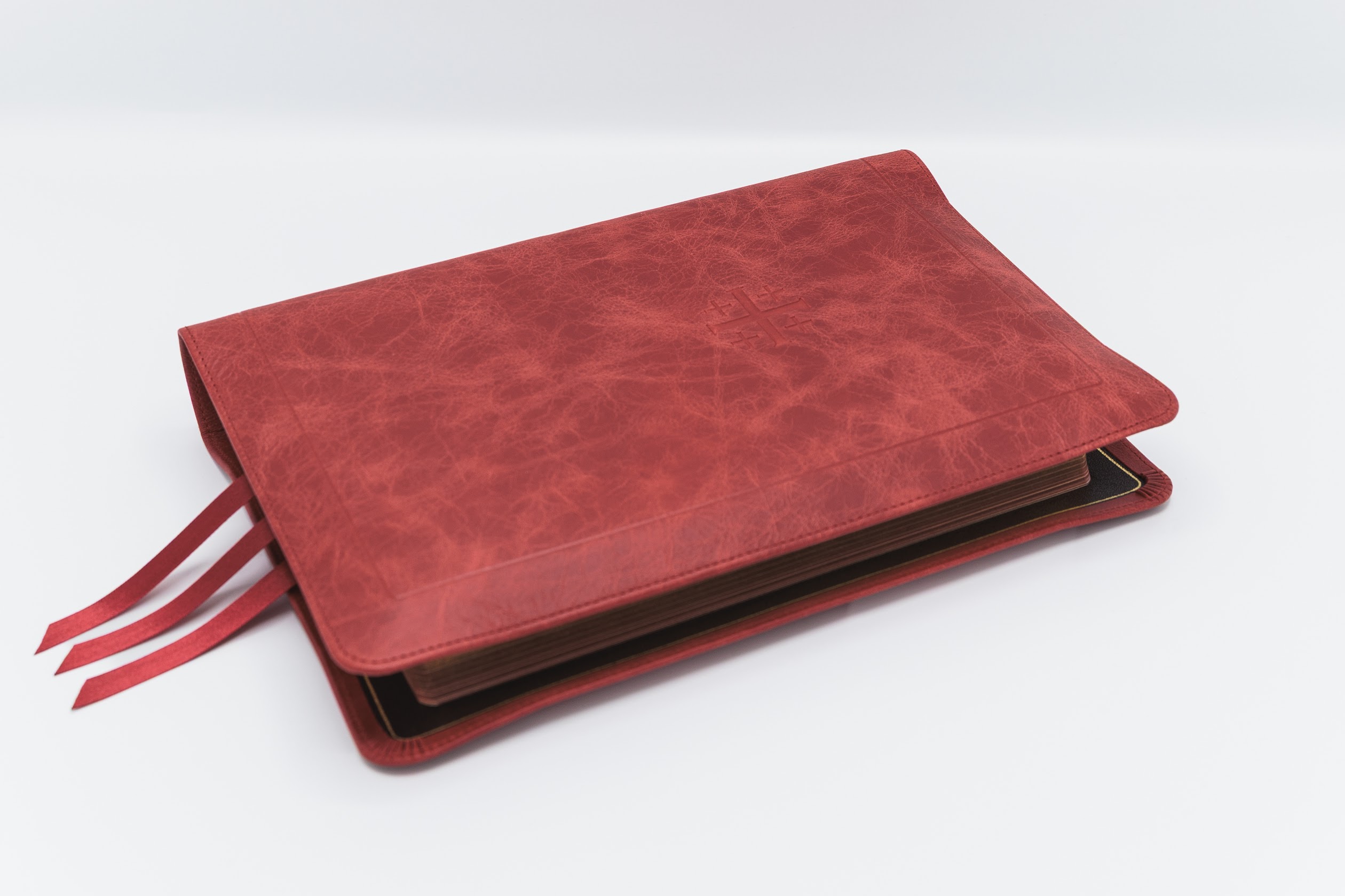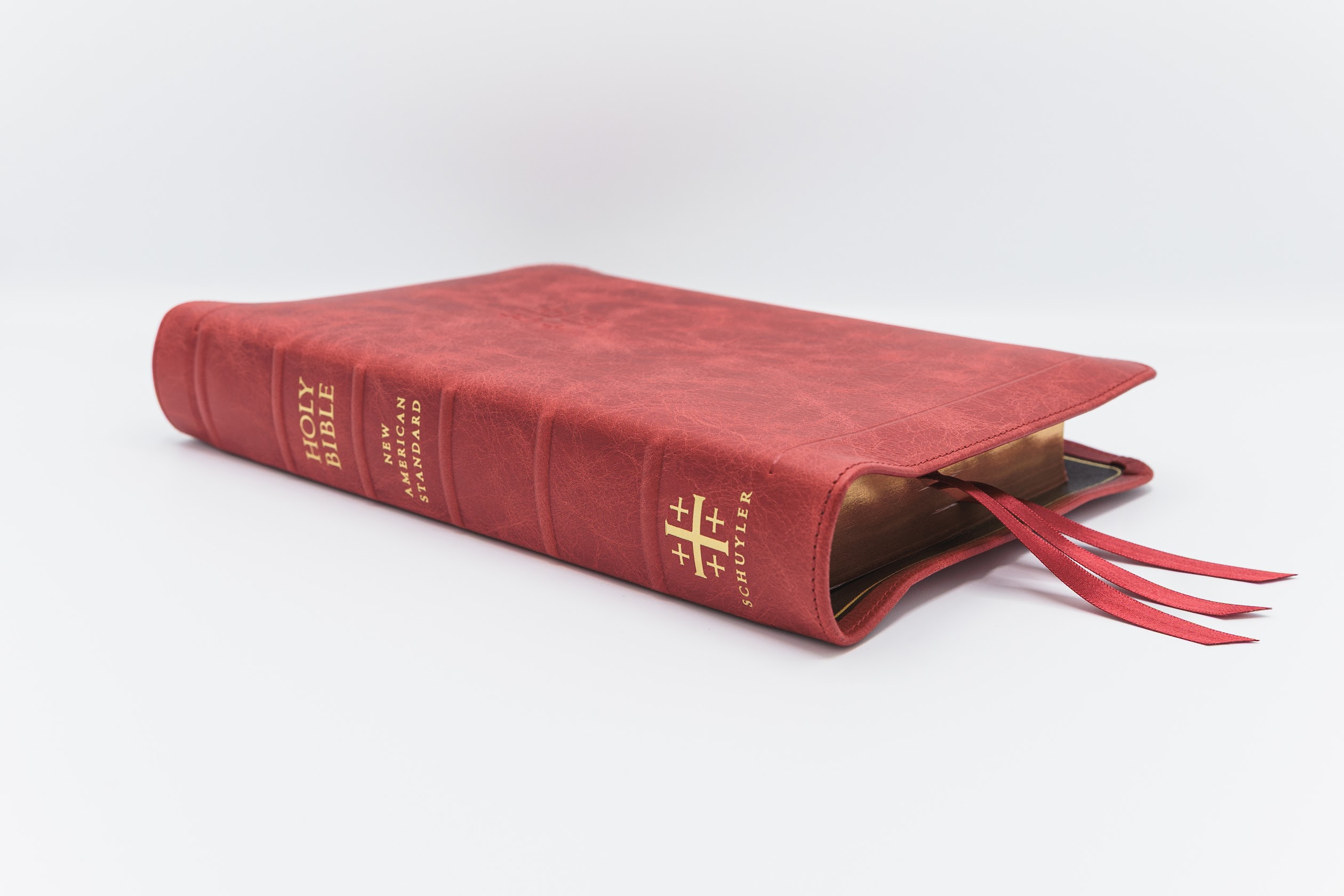 Imperfect H40 Schuyler Quentel NASB, Full Yapp Marbled Crimson Calfskin Bible