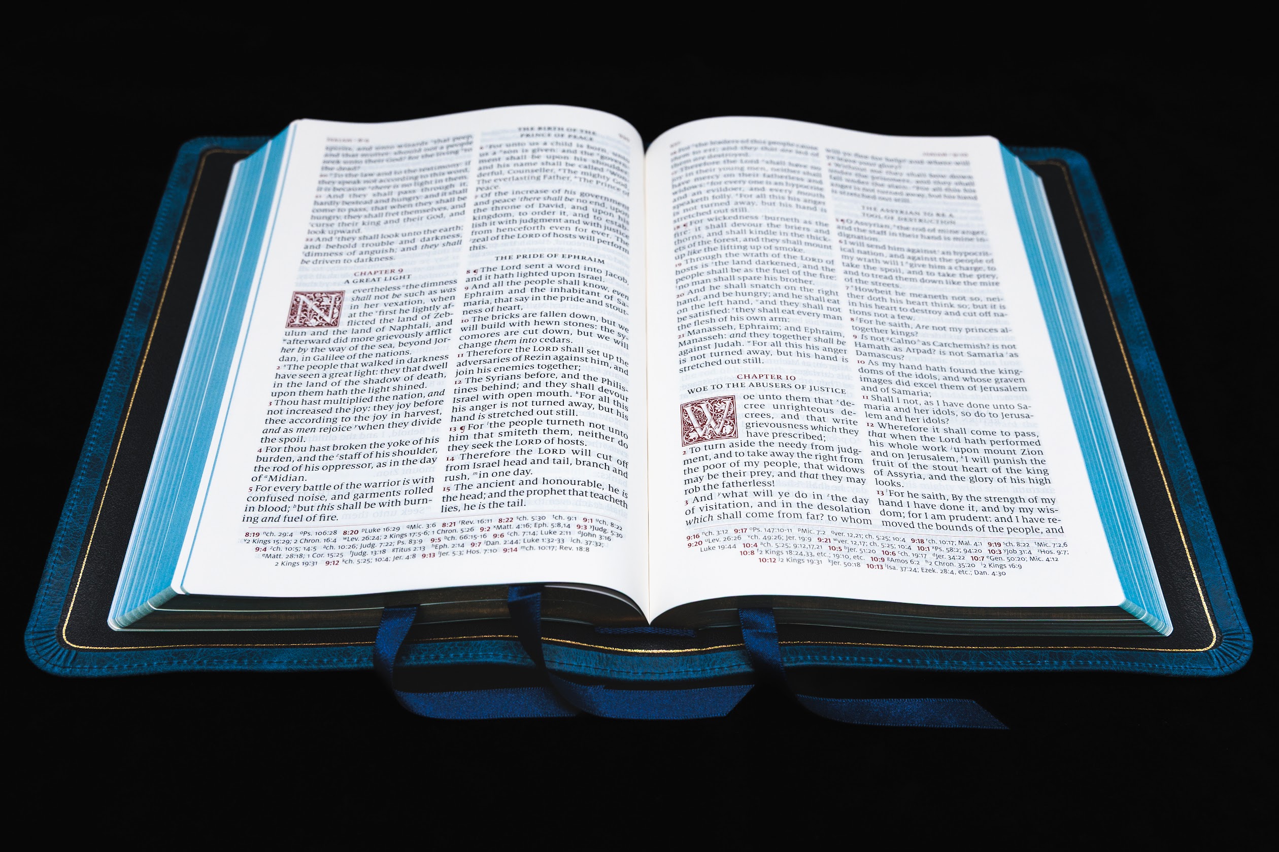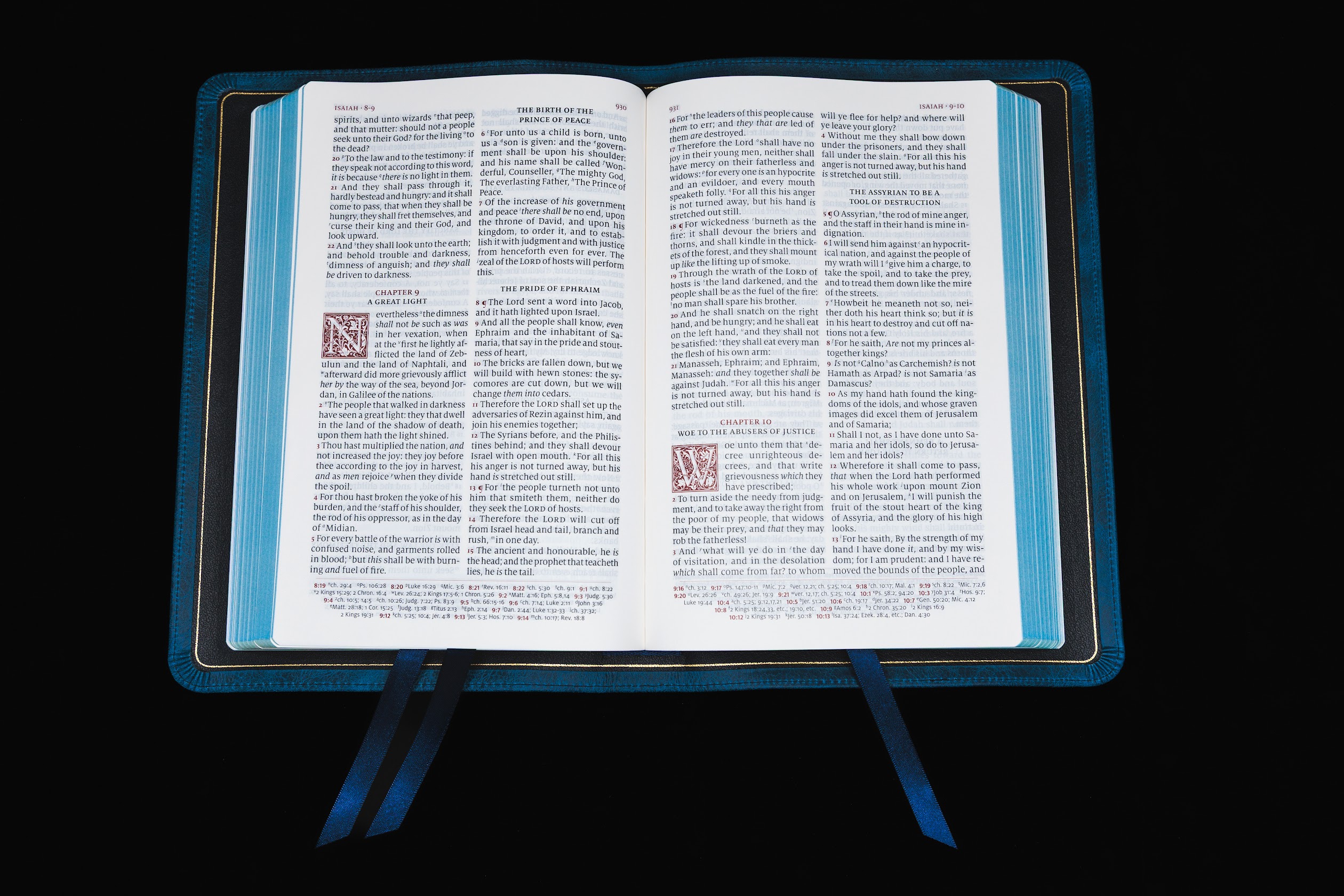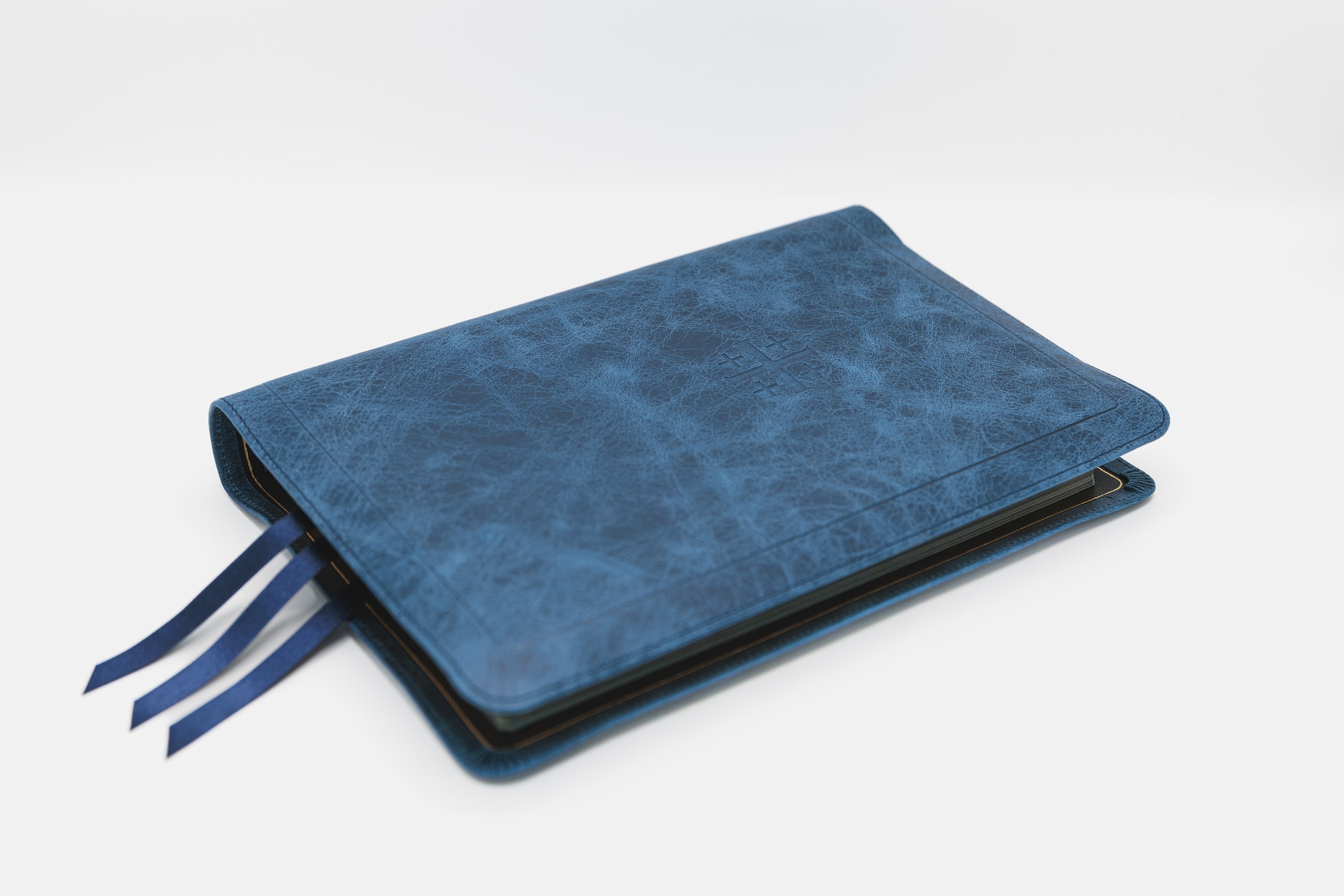Imperfect Z39 Schuyler Canterbury KJV, Full Yapp Marbled Sapphire Calfskin Bible