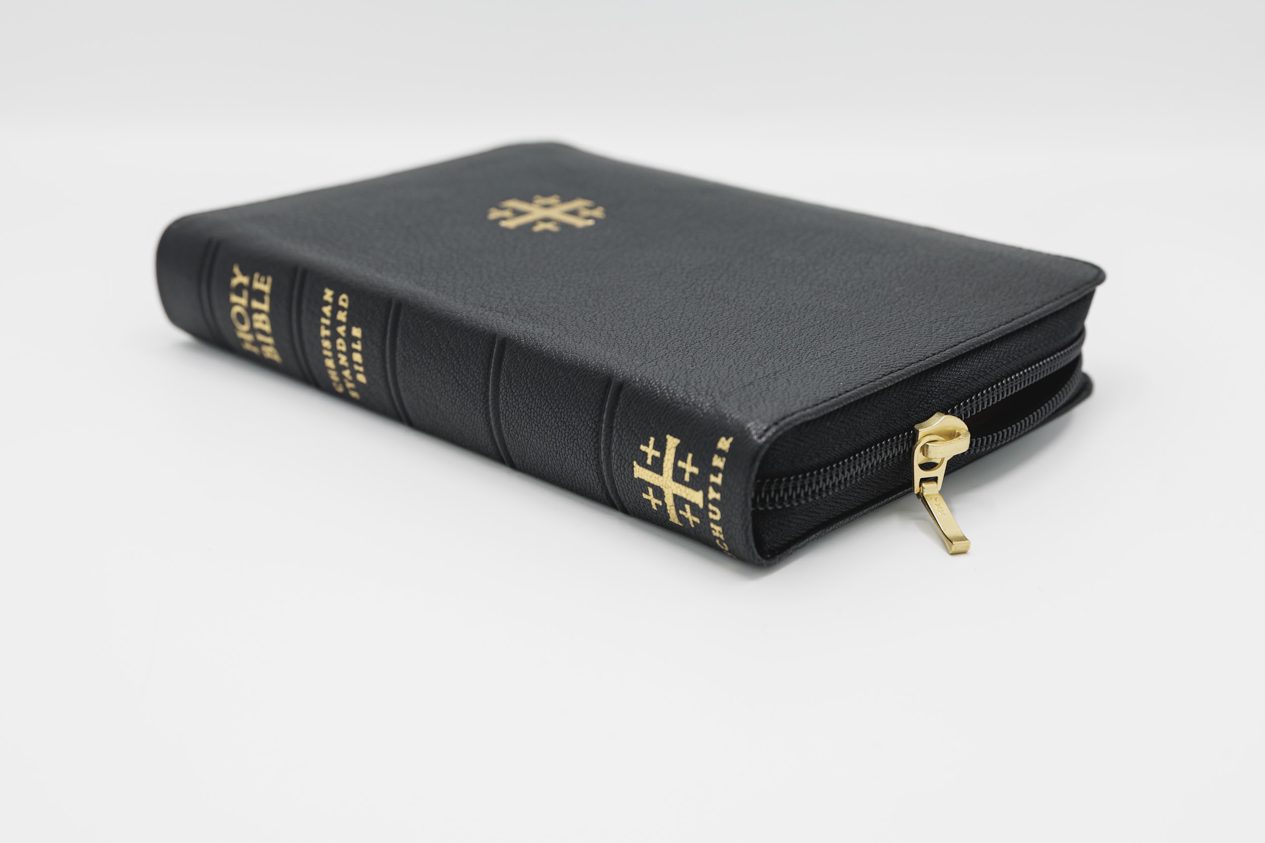 Schuyler Personal Size Quentel CSB, Black Goatskin Bible, Zipper Edition