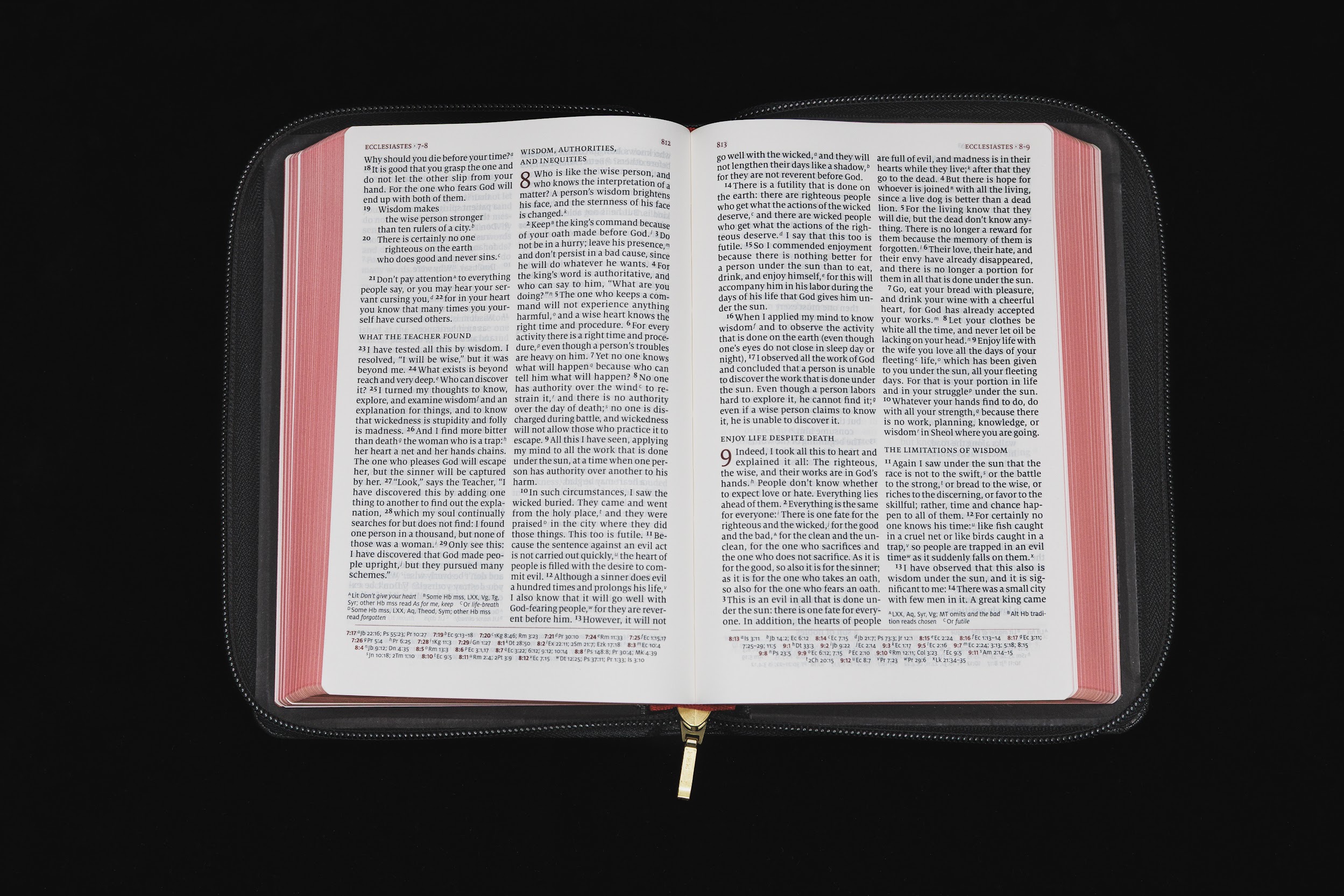 Really like this bible! Wanted one with a zipper for taking to church so it would be more durable and not need a bulky case. Only thing that I think would make it better is a silver metal zipper, but understandable that plastic may have been chosen to reduce the risk of damage to the pages. Really hoping for a single column black CSB in the future, either in this size without the zipper or one of the larger versions, or both.