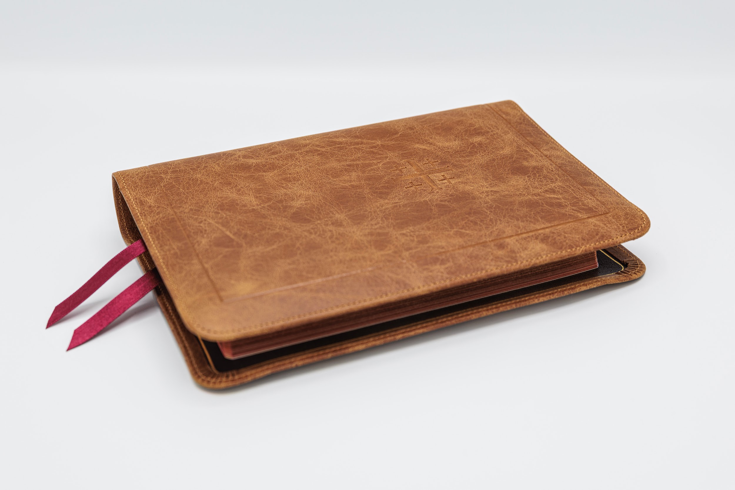 I love everything about this Bible. The overall size is perfect for taking anywhere. The Desert Camel color looks amazing, the pics don’t do it justice. The calfskin is super soft and feels amazing in hand, don’t wanna put it down. I was worried the print might be too small, but the layout makes it very readable even for my old eyes. The imprinting turned out perfectly. Shipped fast and packed with care. I could go on and on, but obviously, I HIGHLY recommend this personal size Bible and EvangelicalBible.com