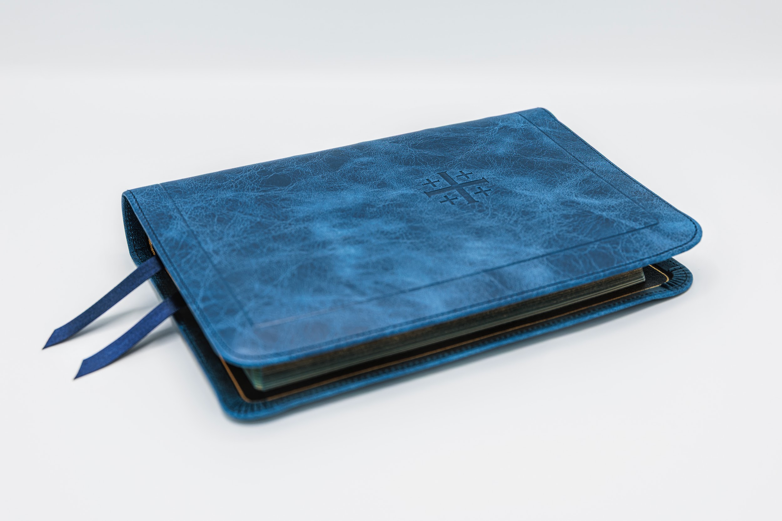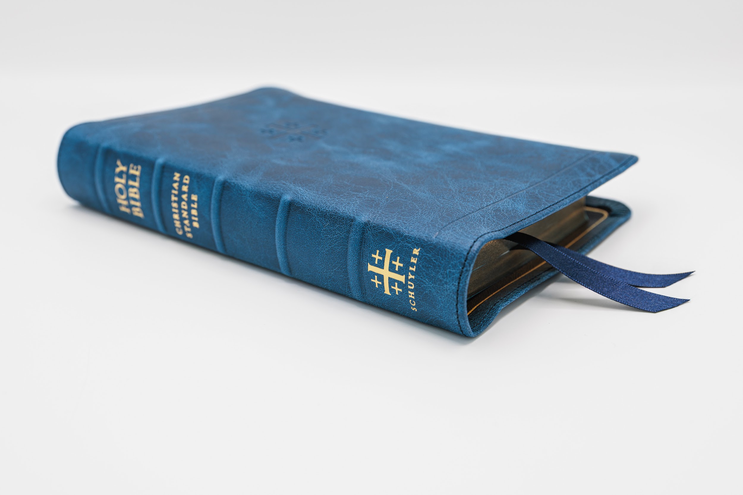 Schuyler Personal Size Quentel CSB, Full Yapp Marbled Sapphire Calfskin Bible