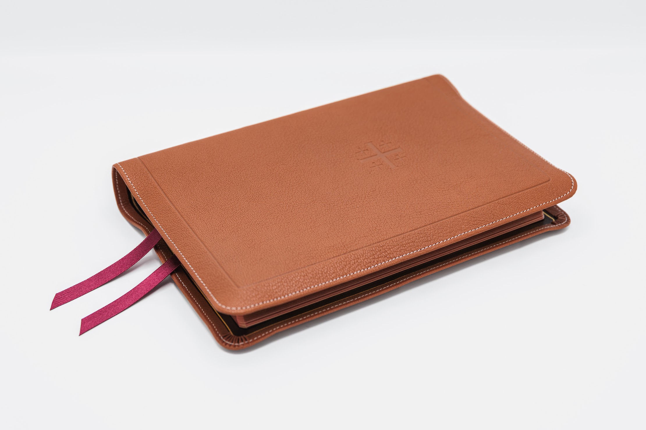 The Schuyler Personal Size Quentel ESV is based on the Quentel Series, which is available in the ESV, NKJV, NASB, NIV, CSB, RSV, and NLT. This edition is designed to be a ‘personal size’ companion to the regular sized Quentel since it is identical in pagination. These Bibles are printed and bound by Jongbloed in the Netherlands, and the covers are made in Germany.