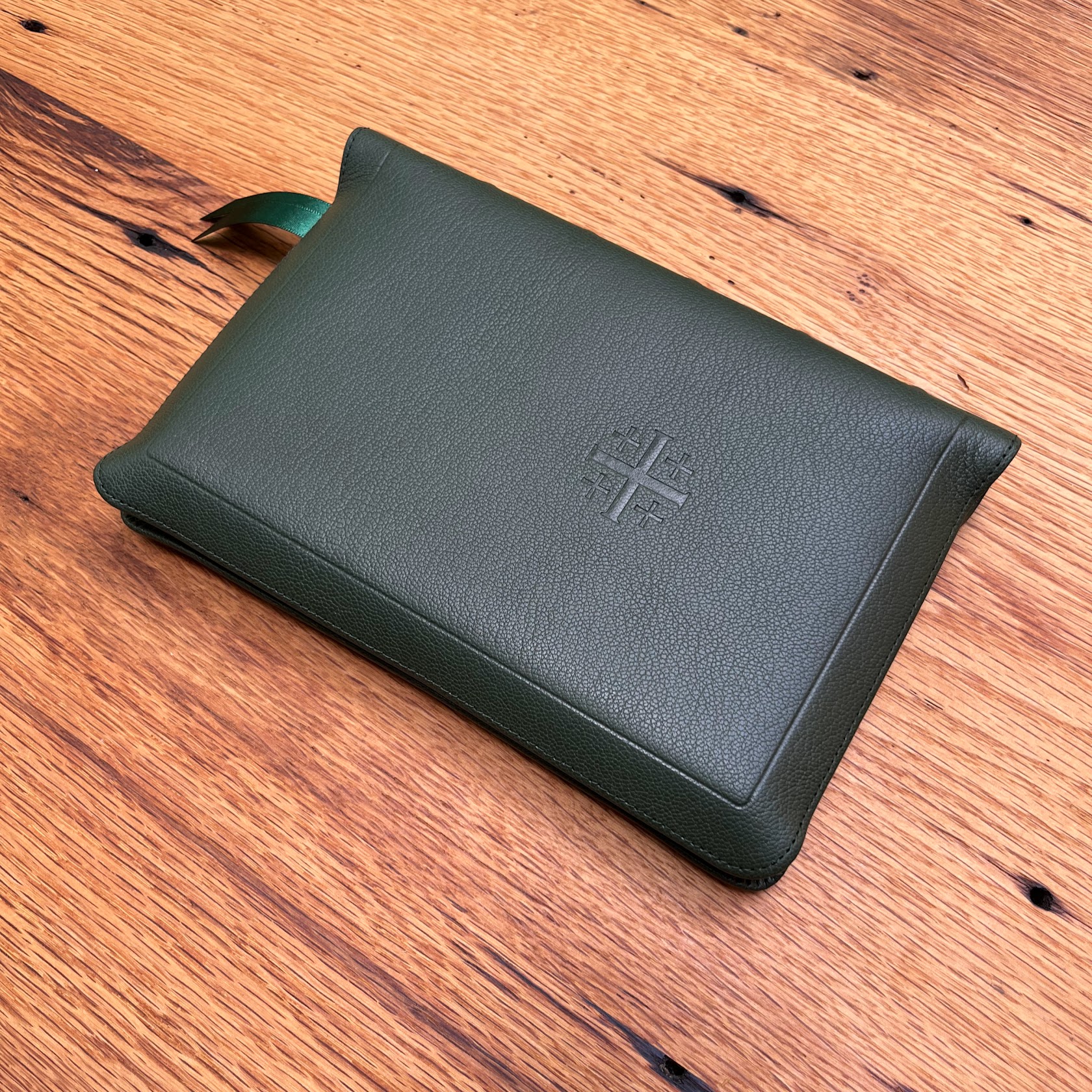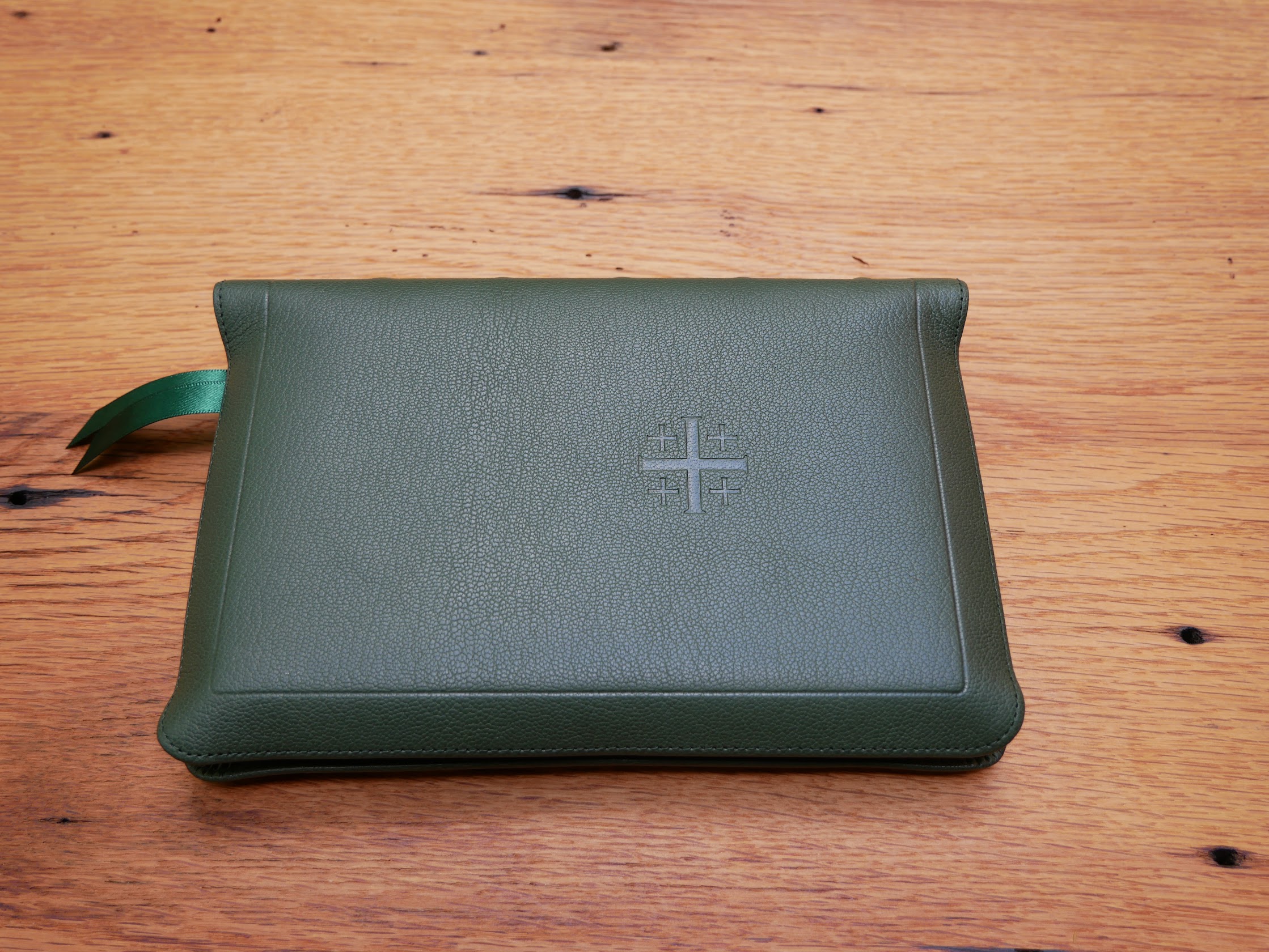 Full Yapp Natural Grain Dark Green Goatskin Cover with Dark Brown Calfskin Liner