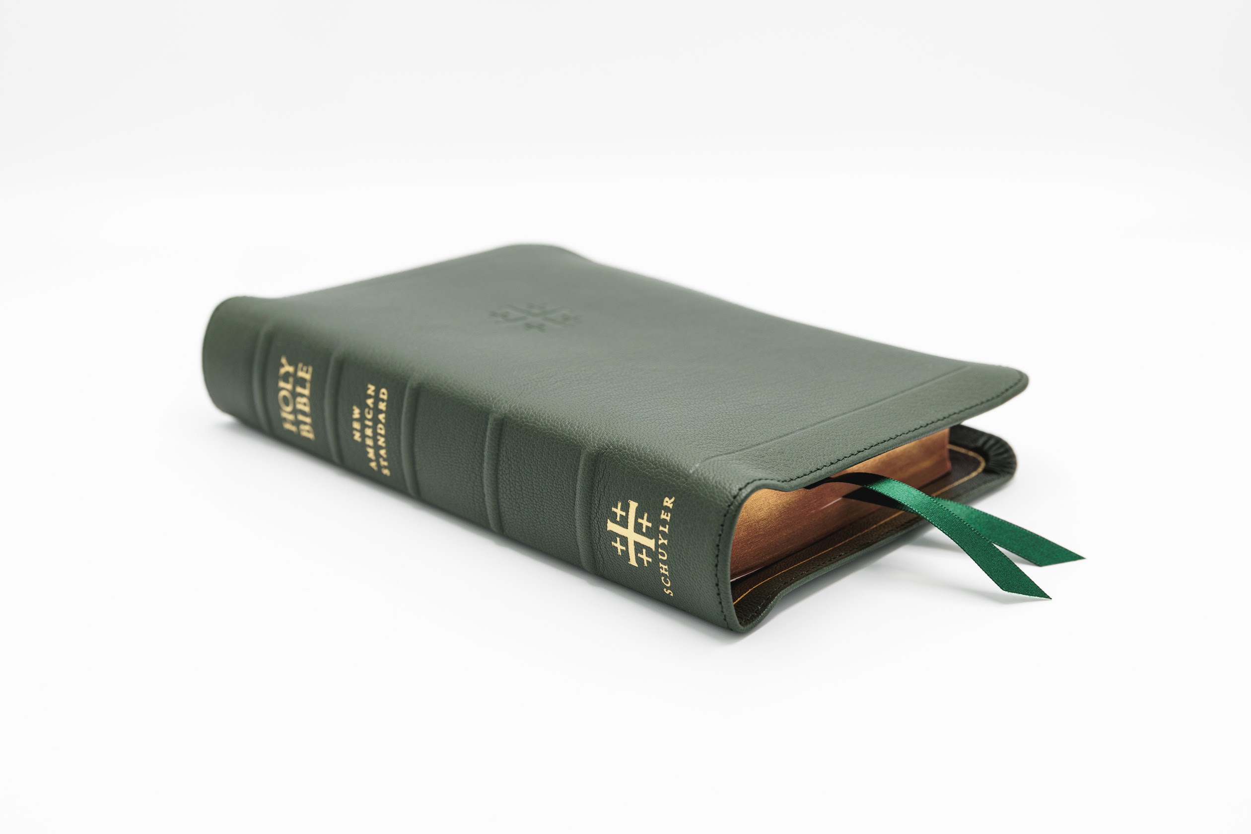 Schuyler Personal Size Quentel NASB, Full Yapp Dark Green Goatskin Bible