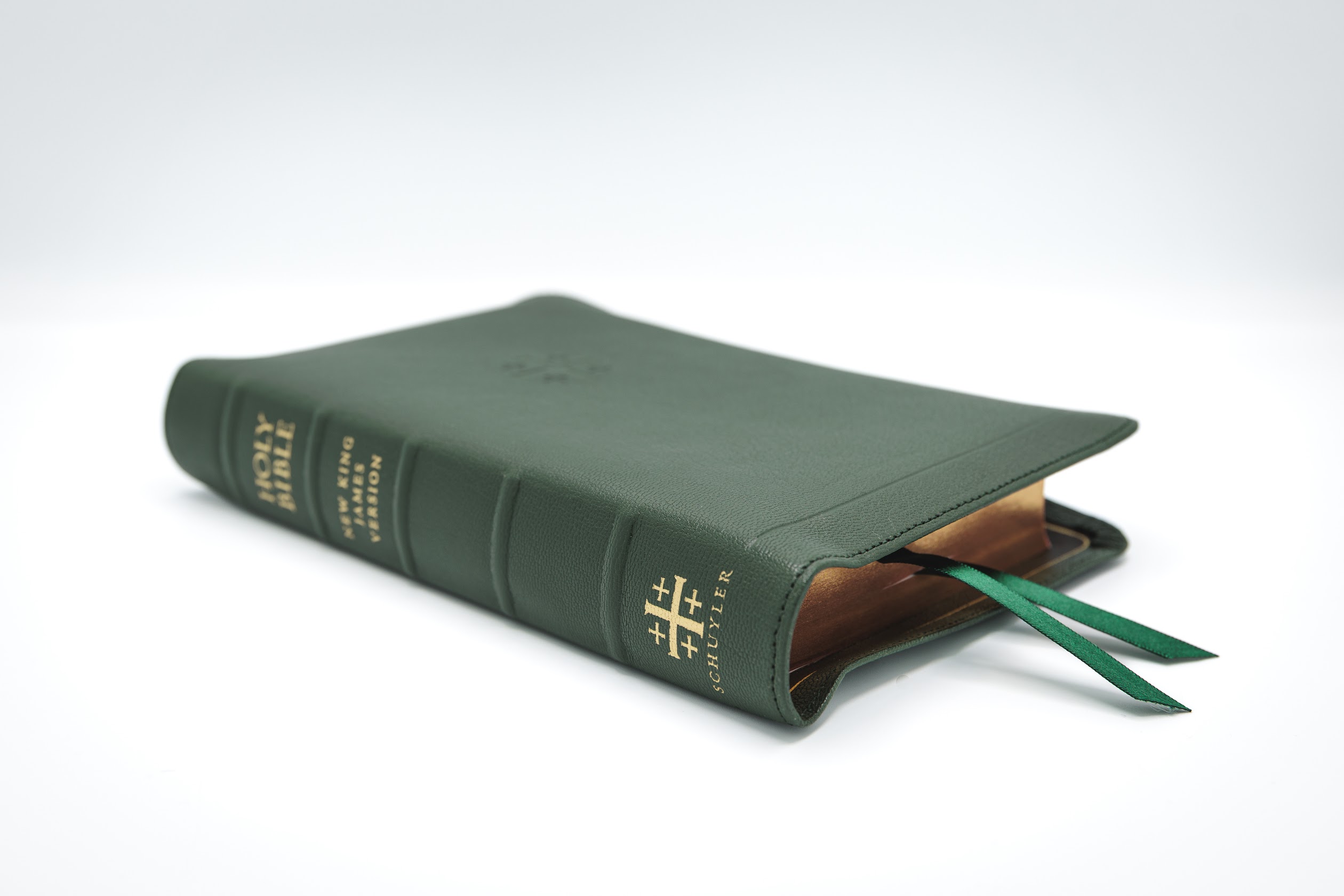 Schuyler Personal Size Quentel NKJV, Full Yapp Dark Green Goatskin Bible