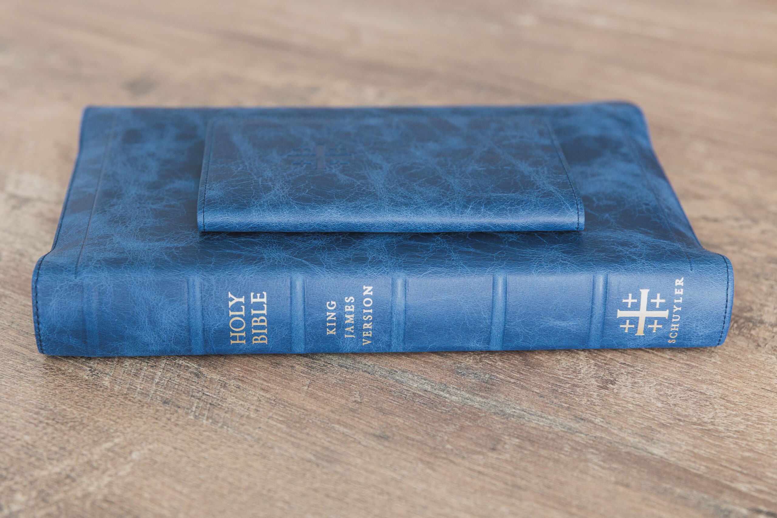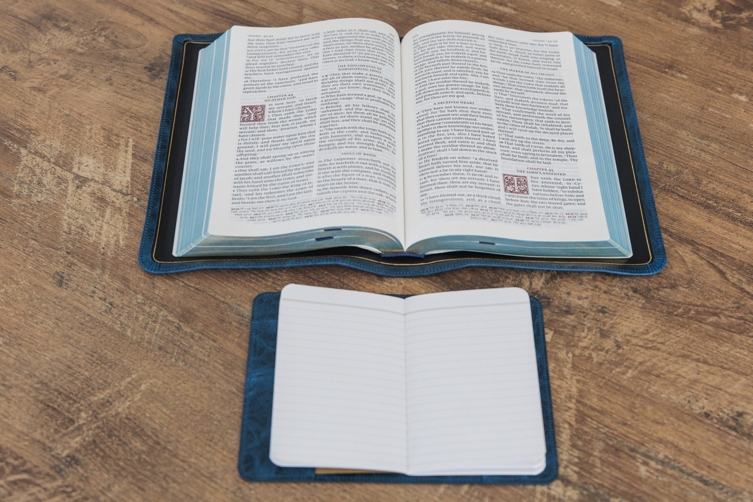 Each Schuyler pocket journal is handmade in Germany with a meticulous nine step process. They use the same premium calfskin leather as our Bibles and are compatible with Field Notes-style memo books. These refillable journals reflect our value of sustainable business practices. Because the creation of leather Bible covers requires a relatively large piece of leather, these journals are crafted from smaller leather pieces that could not otherwise be used for Bible cover-making. They are beautifully designed to fit in your pocket, purse, or bag and serve you for many years to come.
