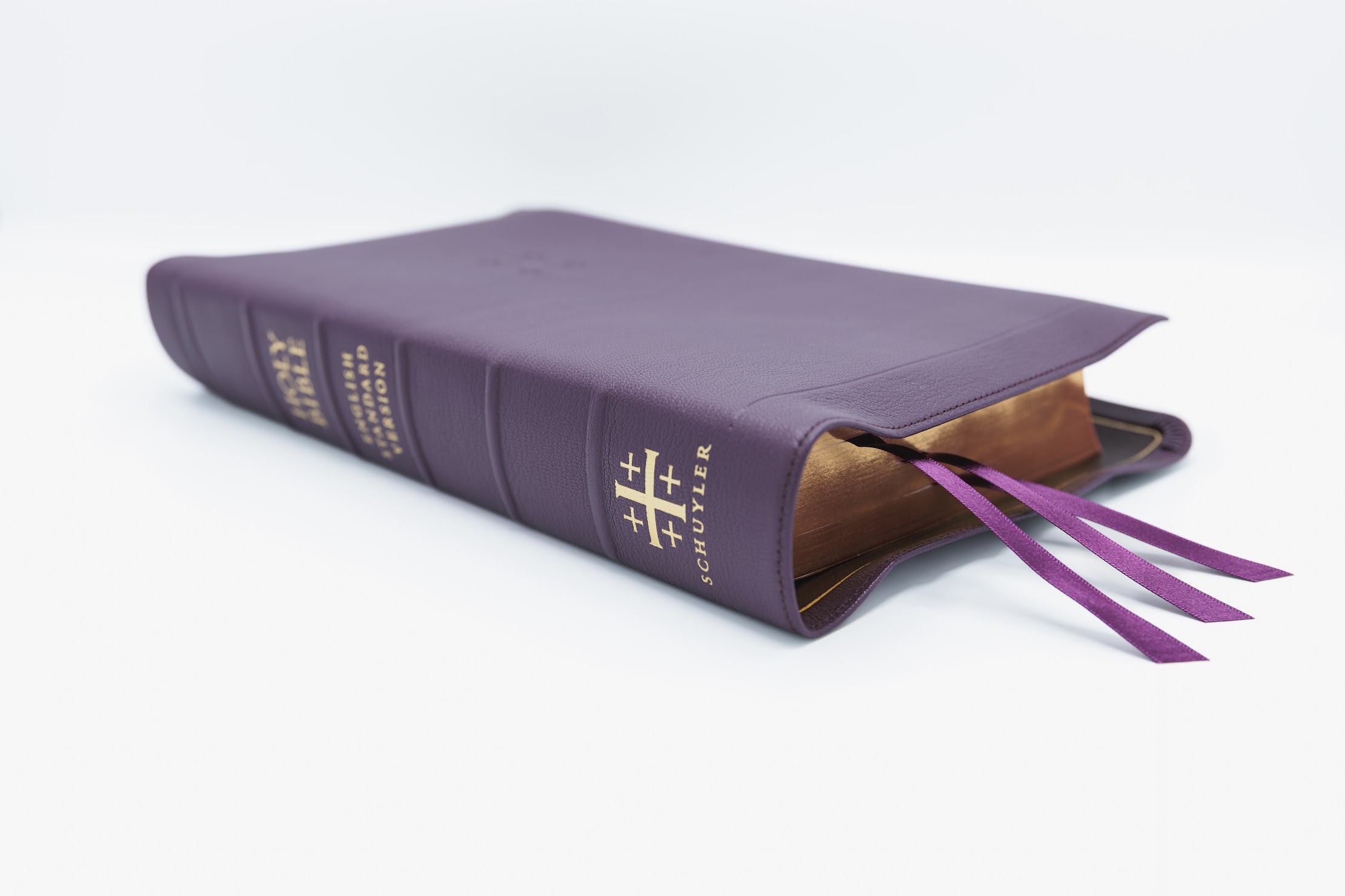 Schuyler Stridon ESV, Full Yapp Dark Purple Goatskin Bible