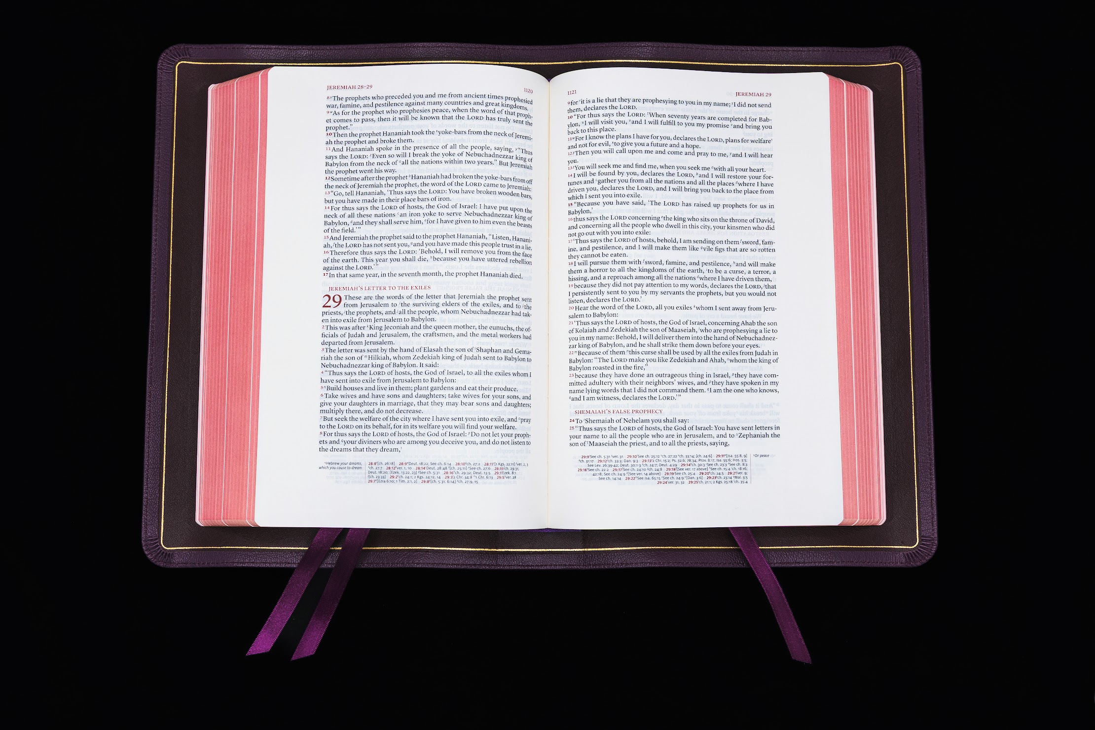 The new and updated Stridon ESV is our same popular verse-by-verse, single column layout but updated with a more opaque 36 GSM paper, substantially wider margins, and 2025 ESV text. Here is a PDF sample. The slightly smaller text accommodates the wider margins while remaining very clear and legible and bold verse numbers have been added to indicate the start of a new paragraph. Cross references and footnotes are separated at the bottom of the page for ease of use. These modifications result in a Bible that functions as a highly practical edition for note-taking and in-depth study.