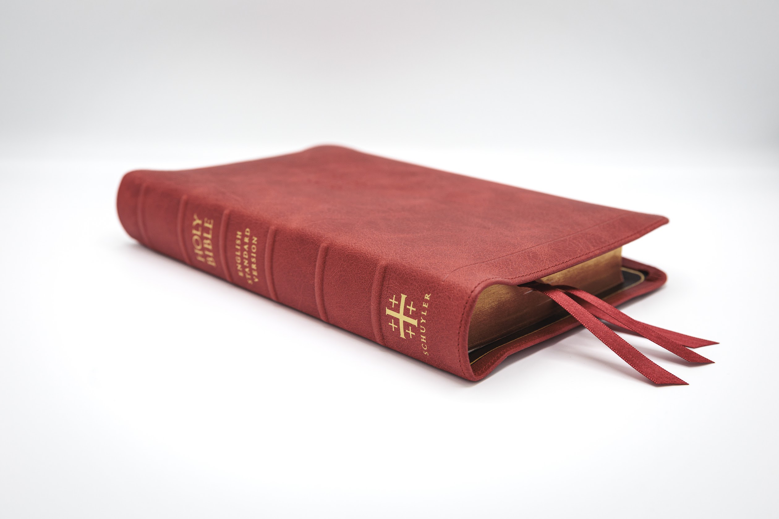 Schuyler Treveris ESV, Full Yapp Marbled Crimson Calfskin Bible