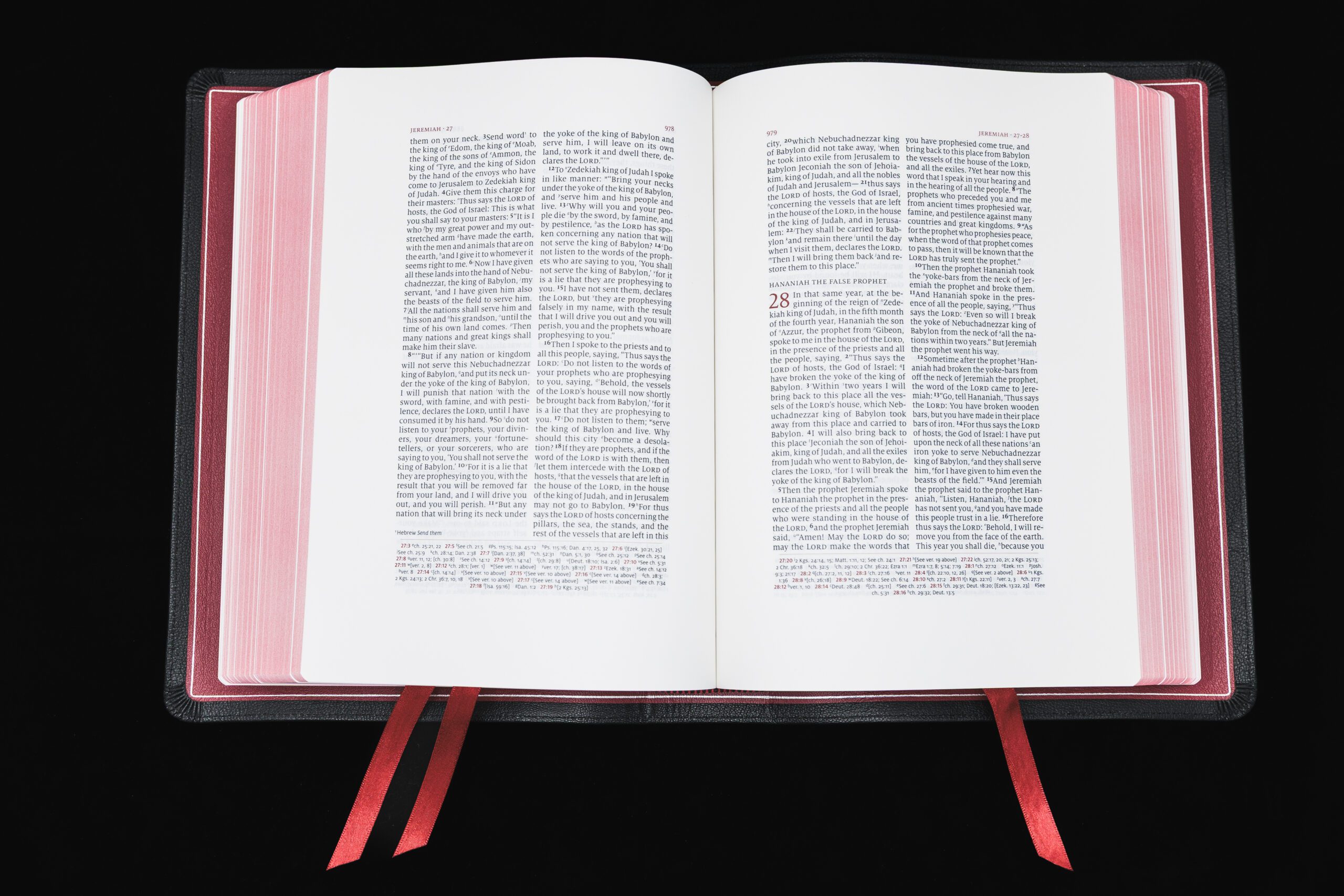 Purchased the wide-margin after buying the Quentel. The 40GSM paper is beautiful on the fingers and the layout design is my favorite. It is heavy, but that contributes (in my mind) to the importance of the Word of God. I have a Bible on my iPhone – this is the total opposite and makes me focus and appreciate the beauty and power of God’s Word. The craftsmanship is flawless!